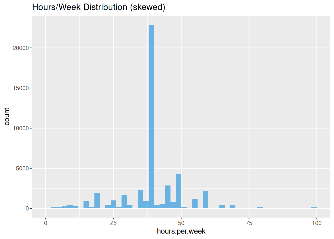 ## $ hours.per.week <dbl> 40, 50, 40, 40, 30, 30, 40, 32, 40, 10, 40, 40, 39, 35…