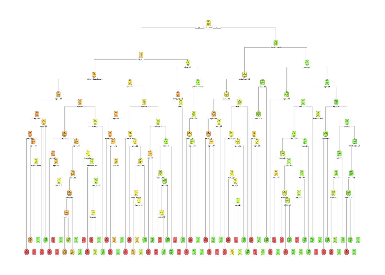 | 11 | 0.78 | when | sexmale | is | 1 | & | age | < | 13 | & | sibsp | < | 3 | ||||||||||||||||||||