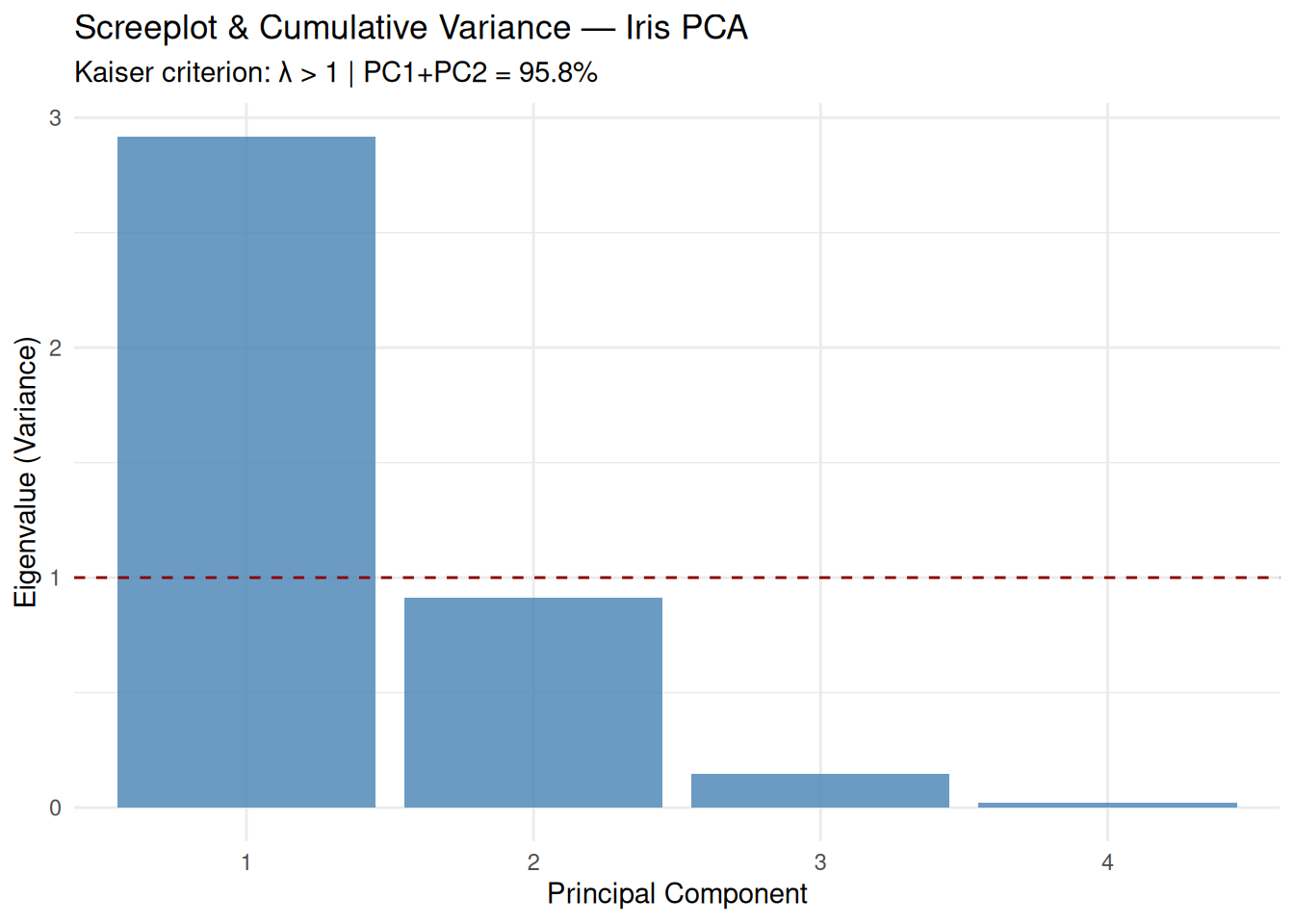 title = "Screeplot & Cumulative Variance — Iris PCA",