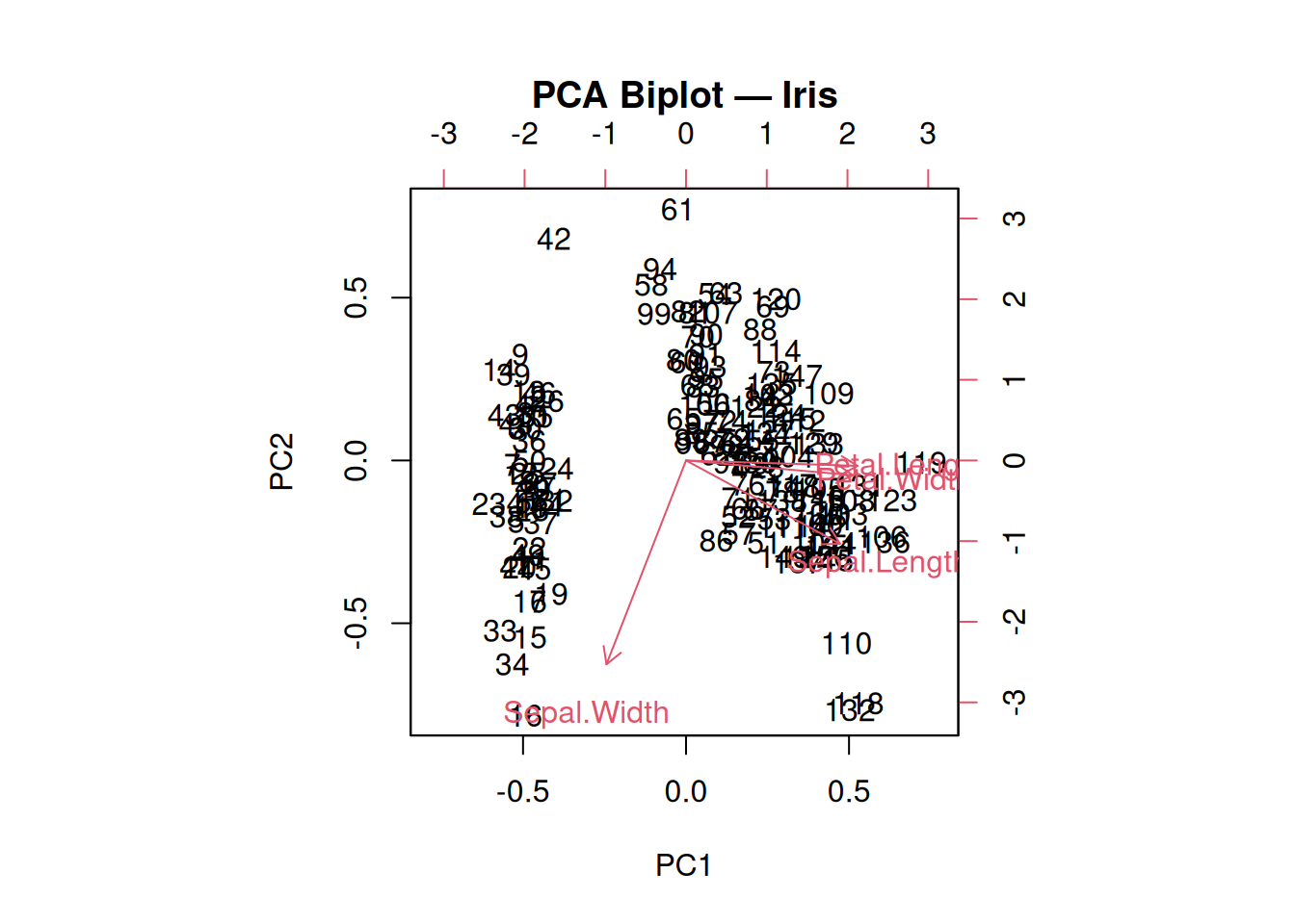 main = "PCA Biplot — Iris")