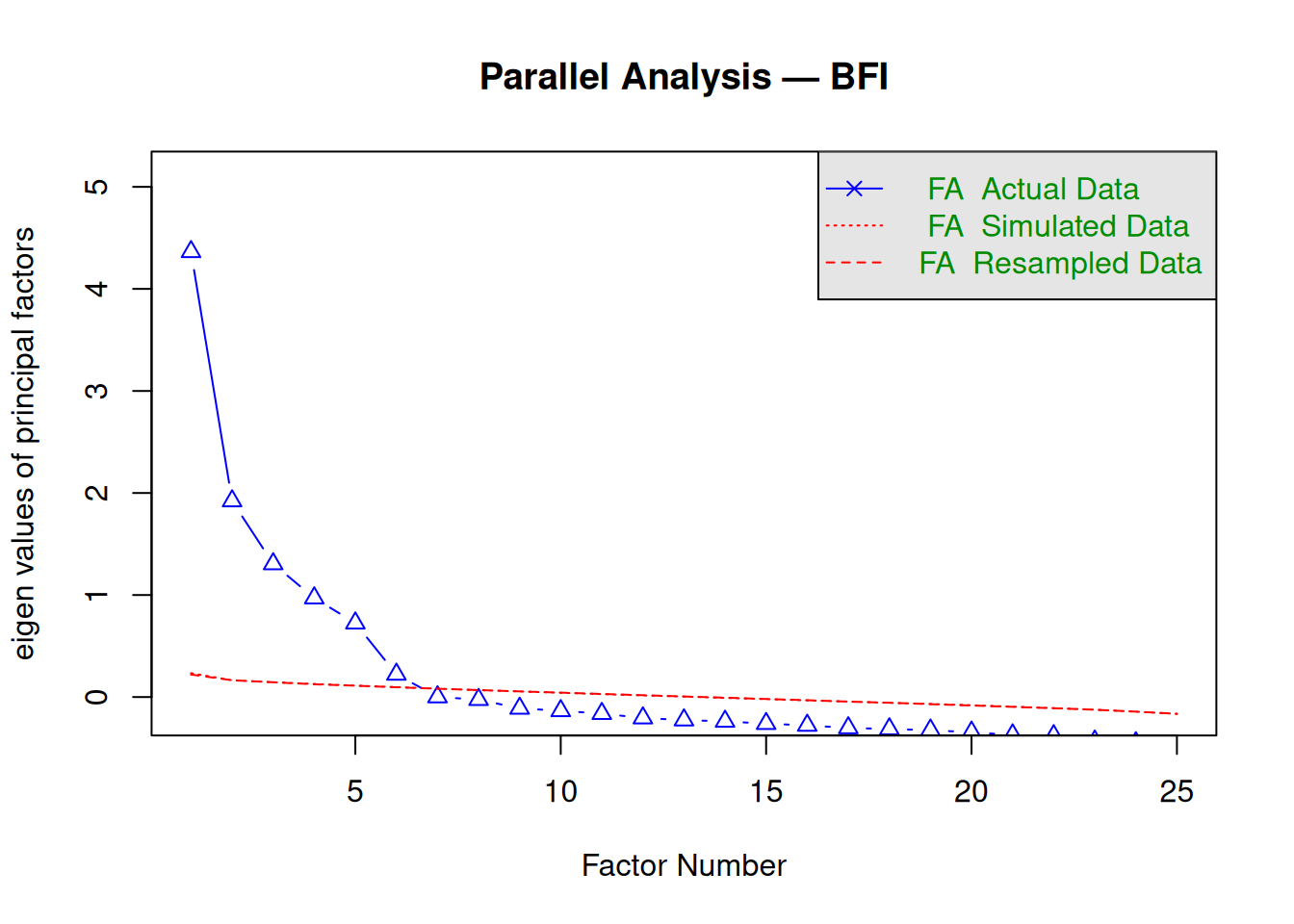 Parallel analysis suggests 6 factors (eigenvalues exceed random data).