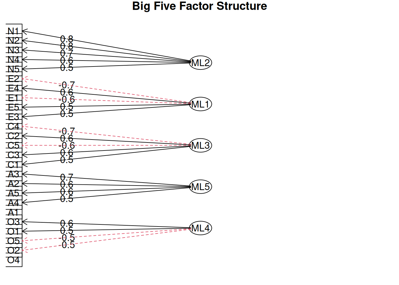 ## Call: fa(r = bfi_num, nfactors = 5, rotate = "varimax", max.iter = 1000,